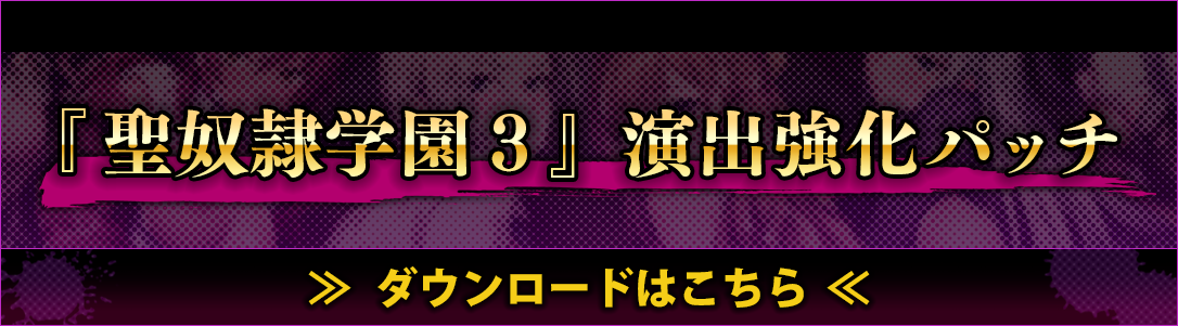![]() 【配布期間】2025年9月26日~10月31日まで ▶特典パッチはNEXTON-PASSPORTにて配布ページからダウンロードいただけます。 【NEXTON-PASSPORTとは?】 今作をお買い上げいただいたお客様が無料で楽しめるオンラインサービスです。 ▶特典データをダウンロードしていただくには、今作のNEXTON-PASSPORTのシリアルナンバーを 登録していただく必要があります。 【NEXTON-PASSPORT登録ページ】https://nextonpassport.com ![]() ▶『聖奴隷学園3 パッケージ版』をご購入の方が演出強化パッチ適応の対象となります。 ![]() ![]() |